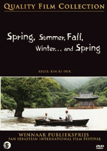 Niemand blijft onberoerd door de kracht van de seizoenen en hun jaarlijkse cyclus van geboorte, groei en verval. Zelfs niet voor de twee monnikken die een kluizenaarshutje delen dat op een vijvertje drijft midden tussen de bergen. Met het ontvouwen van de seizoenen wordt ieder aspect van hun beider levens doordrongen van een intensiteit die leidt tot een nog grotere spiritualiteit - en tragedie. Want ook zij ontkomen niet aan de wensen van het leven, de verlangens, het lijden en de passie die ieder van ons in hun greep houdt. Onder toeziend oog van de Oude Monnik ervaart de Jonge Monnik het verlies van de onschuld wanneer een spel een gruwelijke wending neemt, ervaart hij het ontwaken van liefde wanneer een vrouw hun beschermde leven binnendringt, voelt hij de dodelijke kracht van jaloezie en obsessie, de prijs van verlossing en de verlichting van ervaring. Net als de seizoenen voortdurend aan verandering onderhevig zijn, zal het kluizenaarshutje voor altijd een thuis voor de geest zijn, zwevend tussen het nu en de eeuwigheid.