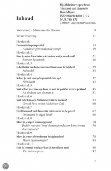 Dementie zorgt ervoor dat je de greep op je leven geleidelijk kwijtraakt. De patient levert vaak een gevecht tegen verlies van controle en veiligheid. Uiteindelijk een gevecht tegen de bierkaai, met grote gevolgen. Vooral voor degene die het betreft, maar ook voor de partner, het gezin, de familie en de vrienden- en kennissenkring. Tegenwoordig willen familieleden maar ook mensen met dementie zelf zich verdiepen in de ziekte. Er komt immers heel wat op je af. Dan is het maar beter om over zaken te hebben nagedacht en gesproken. Je leven wint aan kwaliteit als je niet steeds achetr de feiten hoeft aan te hollen. Dit boek helpt daarbij. Als patient en familie kun je naast kennis en inzicht veel baat hebben bij een professionele steun in de rug. Zo pleit Bère Miesen voor het vroegtijdig inschakelen van een coach die de opties kent, helpt te anticiperen op de ontwikkeling van de ziekte en op de gevolgen daarvan, en de weg weet in de wereld van zorg en welzijn.